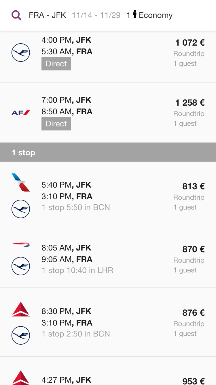 The main form and flight results are built with React and Redux. We use Redux to parse received data and show flight combinations. I also write many unit tests with Jest to ensure given data are correct and make application more robust.