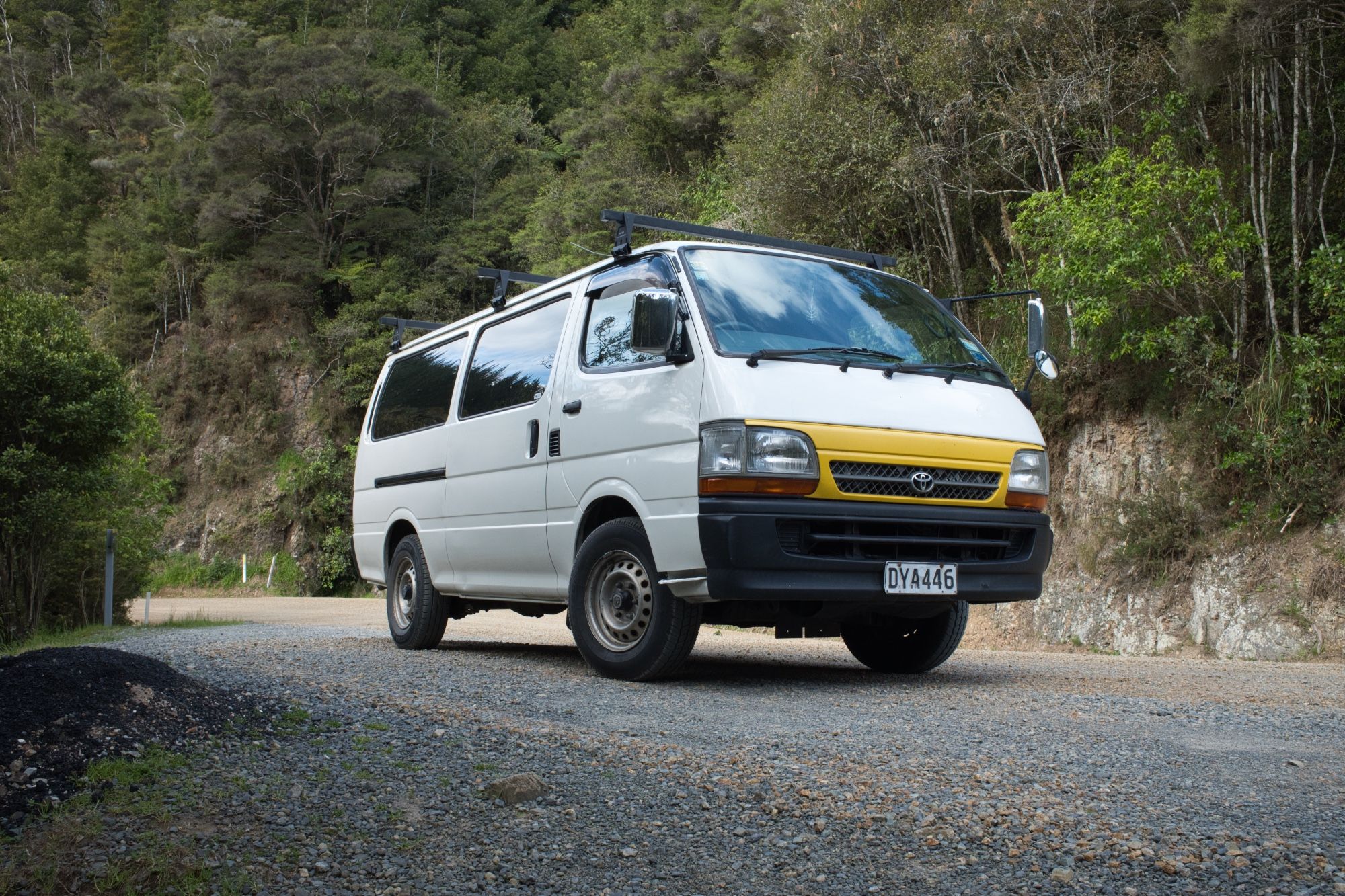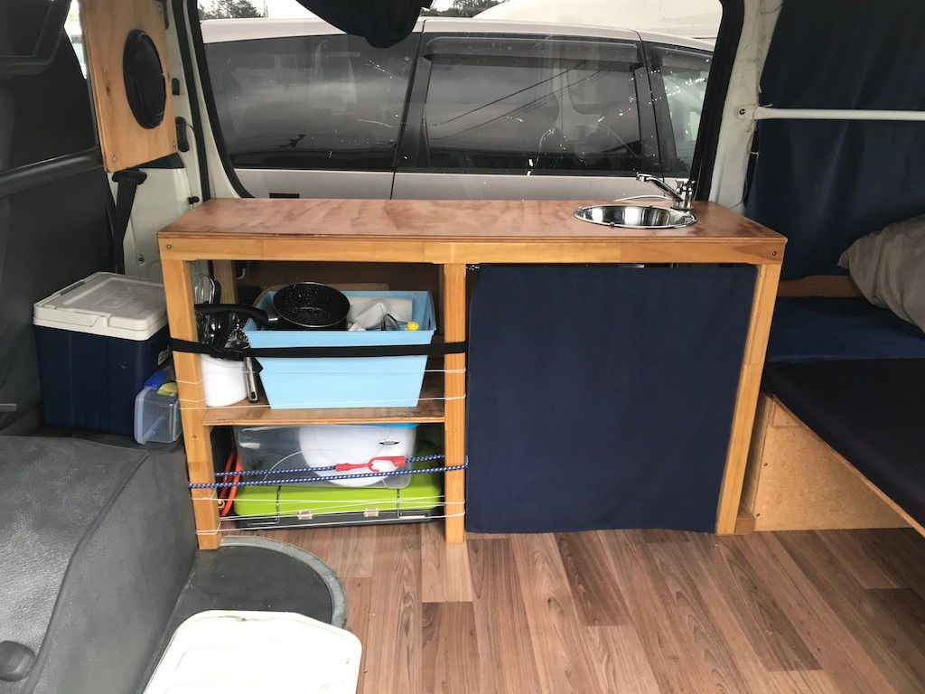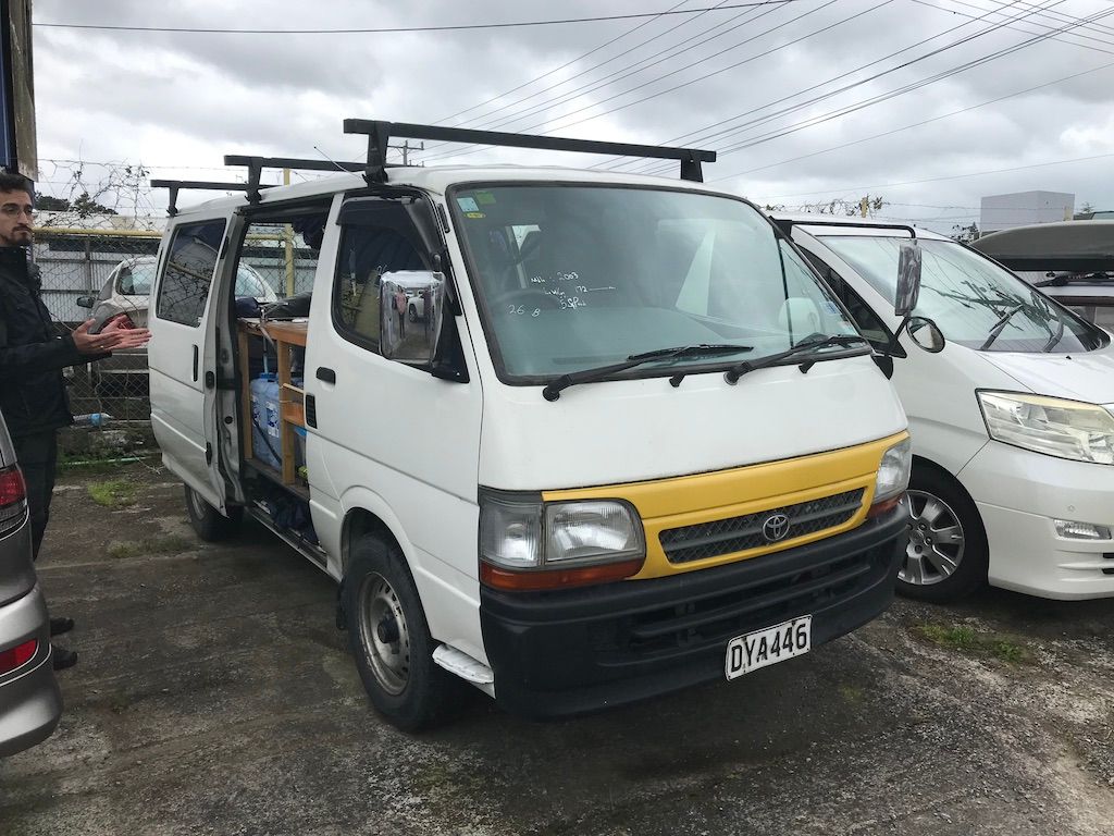 Après plusieurs aller-retours chez le car dealer, nous avons trouvé notre future maison : un Toyota Hiace de 2003 avec tout le nécessaire pour commencer notre road trip (vaisselle, gaz cooker, duvets,...).
