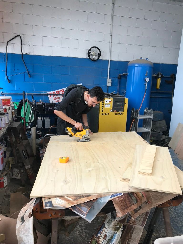 Nous trouvons qu'il manque un peu de rangement et comme il y a de la place, nous avons pu profiter de l'atelier et de tous les outils du garage pour nous construire un meuble.