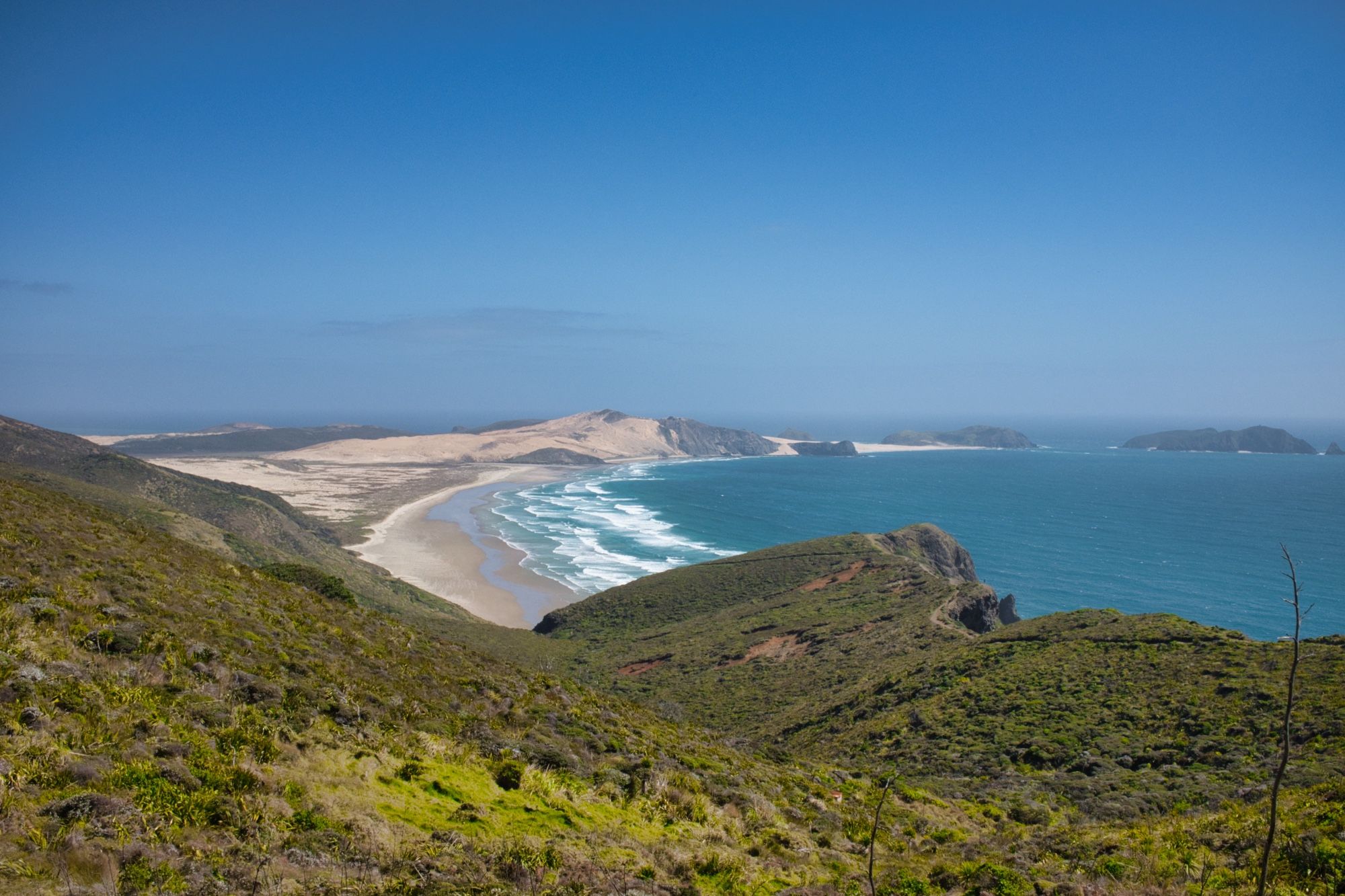 À quelques kilomètres de Cape Reinga le décors change complètement, nous voilà dans le désert ! Les dunes de Te Paki vont jusqu'à 150m de haut, nous y sommes allé avec nos body boards pour descendre à pleine vitesse, c'est le sand boarding !